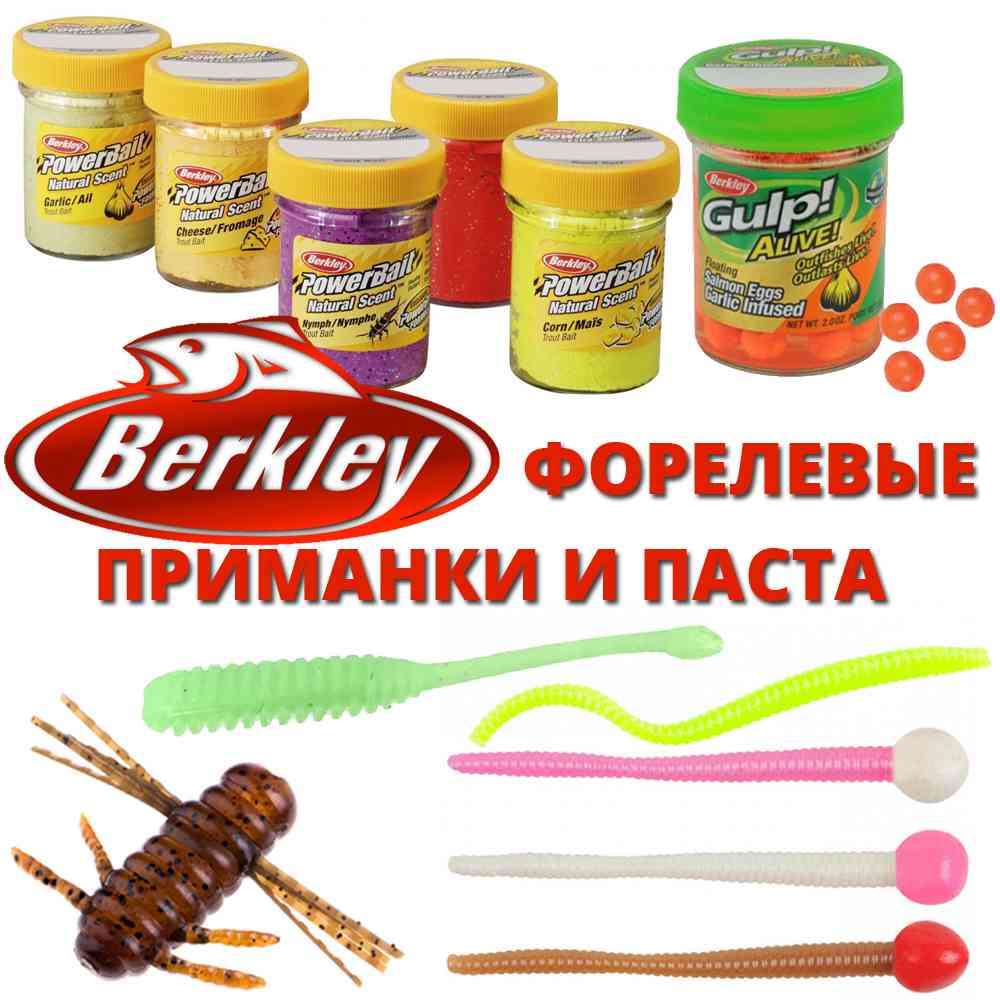 Дорогие друзья, предлагаем вам большой выбор силиконовых приманок и пасты Berkley. Фирма является одним из лидеров и первопроходцев в области специализированных съедобных мягких приманок для ловли форели. Все мягкие приманки Berkeley изготавливаются из пластика средней, сбалансированной жесткости, прочности и упругости. Они хорошо держатся на крючке, имеют пропорциональные формы и габариты для быстрого освоение оптимальных проводок....