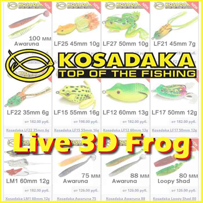 Уважаемые рыболовы, представляем вам новую линейку приманок Kosadaka - Live 3D Frog! В последнее время особую популярность среди рыболовов обрели поверхностные приманки. Они не только позволяют ловить рыбу там, где глубинные приманки невозможно даже провести, но и делают рыбалку более зрелищной и азартной! Особый интерес, как у рыбаков, так и у хищной рыбы, вызывают приманки, имитирующие реальные живые объекты - лягушки и мыши. Именно эти виды...