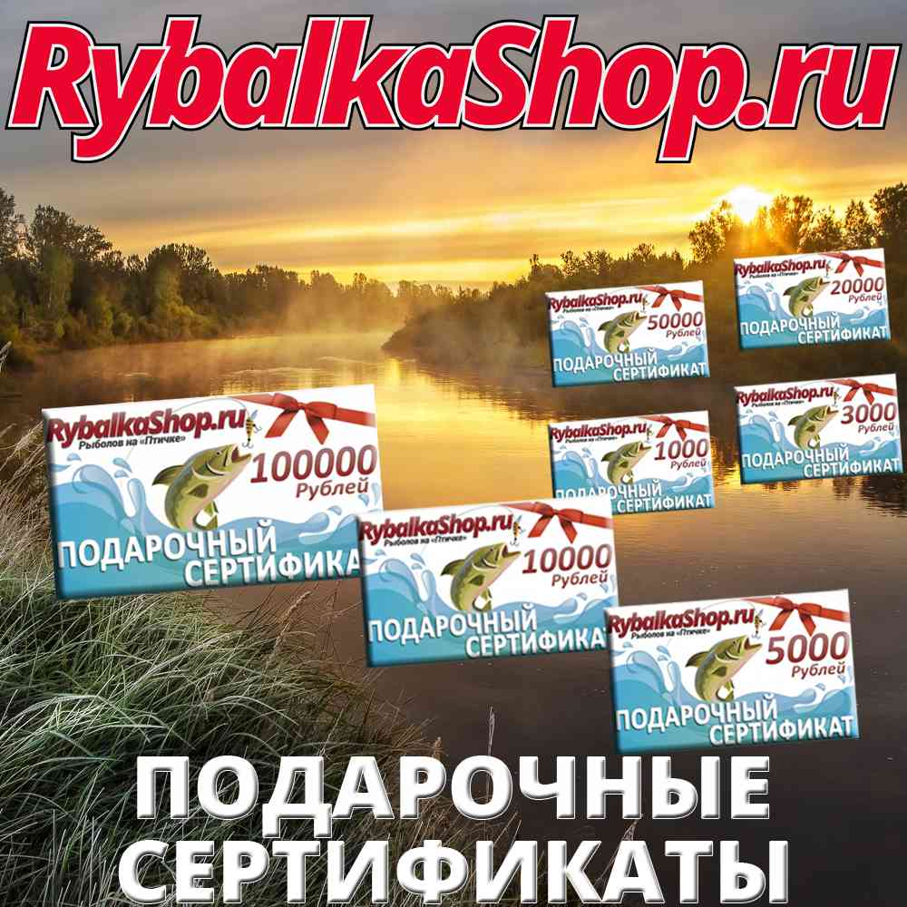 Дорогие друзья, в нашем магазине вы можете приобрести подарочные сертификаты магазина RybalkaShop.ru. Они станут отличным подарком для рыболова, а также для всех любителей активного отдыха на природе и выездов на природу. Сертификат предоставляет его владельцу право приобретения товаров в розничных магазинах и в интернет-магазине RybalkaShop.ru "Рыболов на птичке" на сумму, равную номиналу подарочного сертификата: 1000, 3000, 5000, 10 000, 20 000 , 50 000 и 100 000...