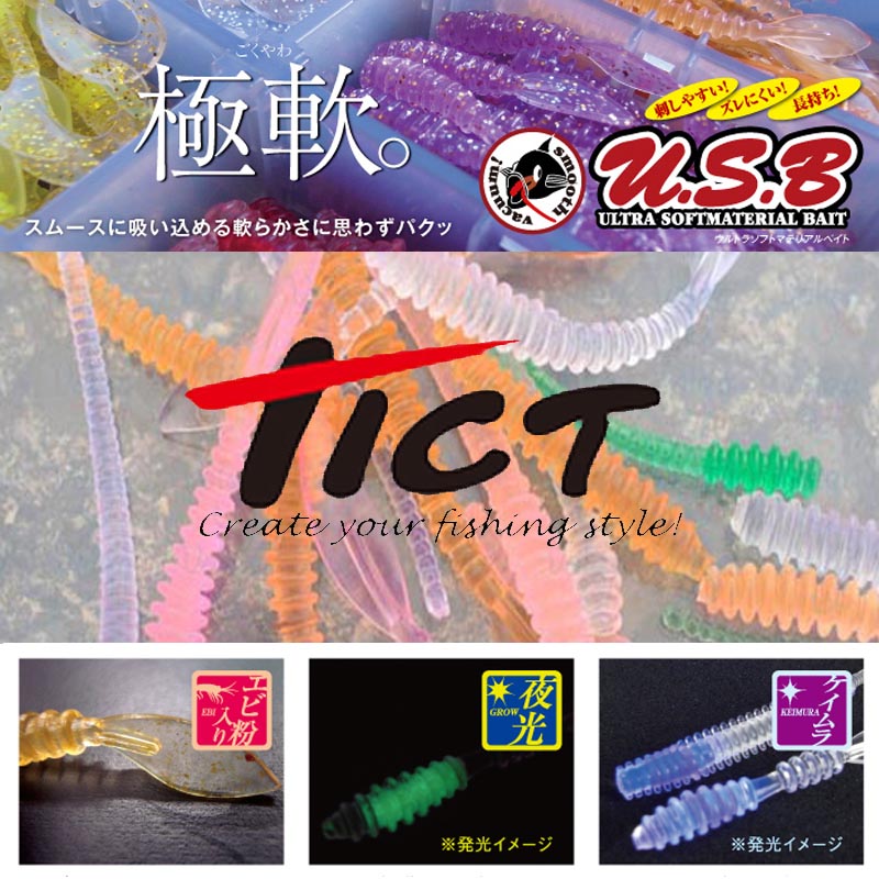 Дорогие друзья, продолжаем знакомить вас с мягкими приманками различных фирм, и сегодня речь пойдет о силиконовых приманках компании Tict: Brilliant, Fisit и Lizard Tail. Игра этих червей обеспечивается за счет анимации рыболова - твичинг с паузами, игра при падении и т.д. Монтируются съедобки Tict на отводной, "дроп-шот", "каролина", "техас" и т.д. Так как вес и размер самих приманок небольшой, снасти для них потребуются легкие и ультралегкие. Черви Tict отлично подойдут для точных забросов деликатной снастью, когда рыба уже насытилась и ведет себя пассивно.