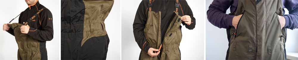 Комбинезон костюма Norfin Discovery имеет классический высокий подъем, закрывает спину и область поясницы от продувания ветром. Регулируемые по длине эластичные лямки полукомбинезона позволяют оптимально подогнать полукомбинезон по росту и позволяют создать максимум свободы при любых активных действиях. Шлевки под ремень позволяют носить ремень, на который можно дополнительно повесить рыболовные аксессуары или складной рыболовный нож.