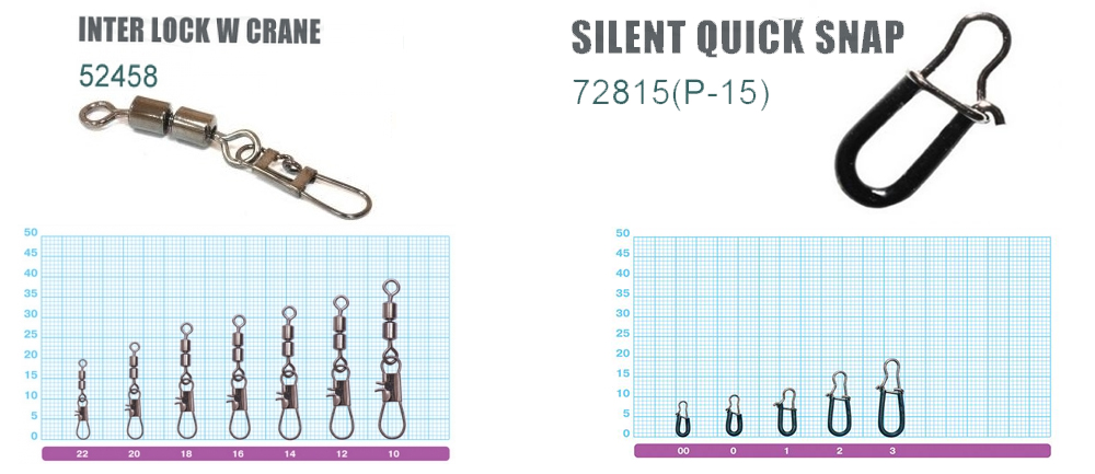 Двусторонняя застежка Owner P-15 72815. От обычных, даже очень качественных застежек, эту модель отличает одна немаловажная деталь. Одна из сторон этой застежки «одета» мягким кембриком. Такая особенность обеспечивает бесшумное сочленение ее с приманкой. Великолепно зарекомендовала себя в сочетании с двойным вертлюжком, в частности, при изготовлении оснастки для ловли рыбы на бомбарду.
