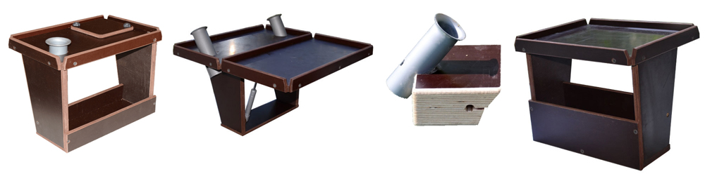 Столики ToCamp служат для размещения в лодке электронных приборов, рыболовных принадлежностей и иного оборудования, без которого на борту обойтись невозможно. Они быстро устанавливаются и снимаются, и хорошо экономят пространство в лодке. Выполнены из ламинированной фанеры, торцы пройдены влагоотталкивающей пропиткой, поэтому выдержат любые погодные условия, сохранив изделие в первоначальном виде.