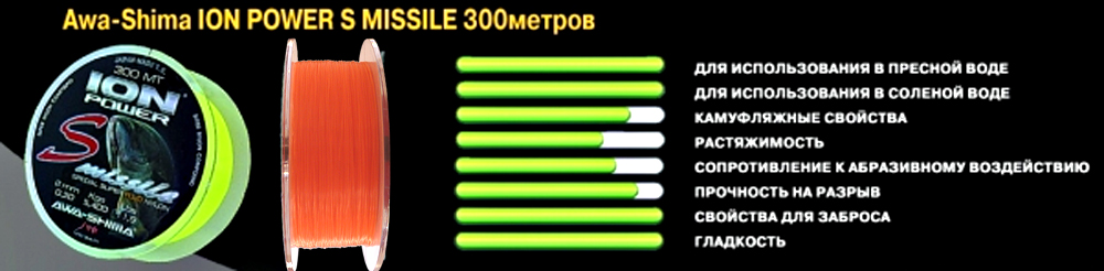 Леска карповая Awa-Shima ION Power S-Missile Fluo 300м