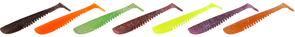 Мягкие приманки Petz Runa имеют ребристую поверхностью тела и небольшой хвостик. Выпускаются в двух размерах - 7 см (3") и 10 см (3,5"), в упаковке 5 и 7 штук соответственно: