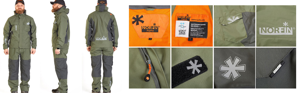 Перед компанией стояла задача создать мембранный костюм с хорошими показателями по влагозащите, без потери в дышащих качествах и все это за разумные деньги. В Norfin Alpha заложили проверенную мембранную ткань NORTEX ® с показателями 10 000 мм по влагоотводу и 8 000 г/м²/24час по паропроницаемости. Ткань с такими показателями используется уже не первый год во флагманских моделях дождевой одежды фирмы и доказала свою отличную и стабильную работоспособность. Если костюм позиционируется как дождевой, швы у Norfin Alpha обязательно проклеены. Мощная мембранная ткань, в сочетании с полностью проклеенными швами, представляют собой отличную защиту даже от сильных осадков.