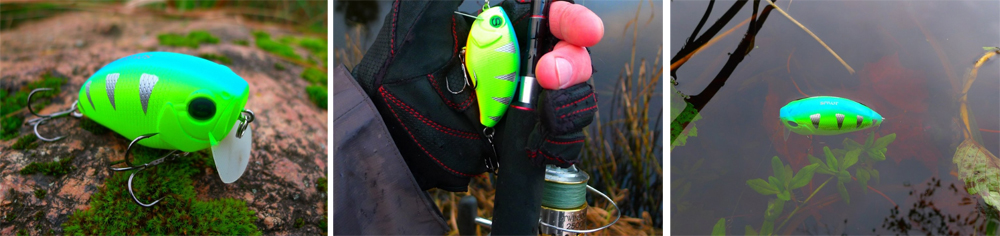 Среди множества разнообразных моделей вращающихся блесен Sprut можно подобрать приманку, подходящую для любых условий ловли. Широкий модельный ряд насчитывает несколько десятков приманок различных типов и форм. Приманки выпускаются в разнообразнейшей цветовой палитре.