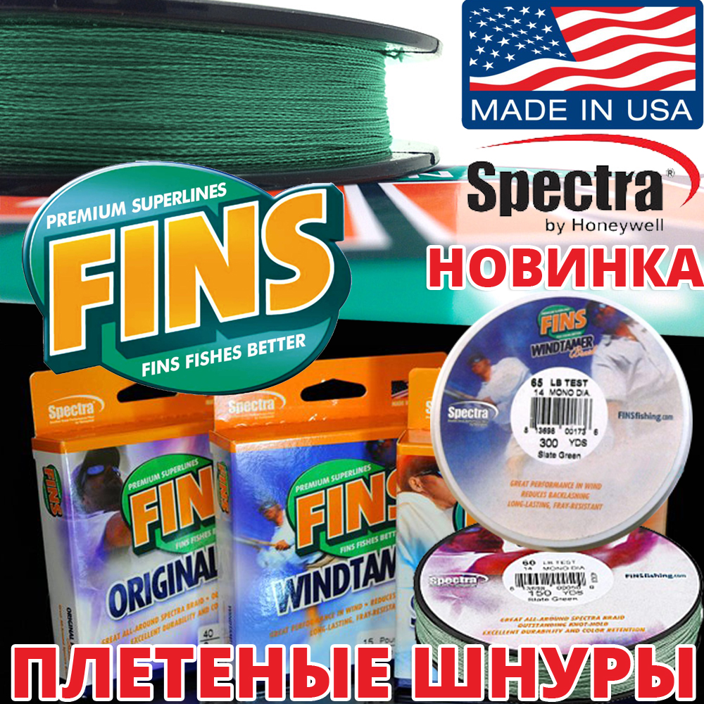 Уважаемые рыболовы, представляем вам новинку ассортимента - плетеные шнуры Fins. Модели производятся только в США и являются сертифицированными нитками International Game Fish Association - Международной ассоциации спортивного рыболовства, что само по себе гарантирование заявленных прочностных и метрических характеристик.