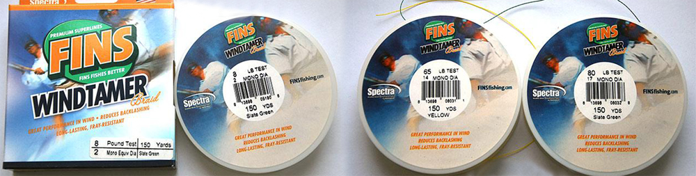 Плетеные лески Fins произведены из материала Spectra. Они сделаны из такого же материала, из которого сделан популярный в России плетеный шнур Power Pro. Шнур WindTamer мягкий, тонкий, хорошо летит, не путается на шпуле. Если сравнить шнур Fins WindTamer c Power Pro, то разрывная нагрузка (одинаковых диаметров) у Fins на 10% выше! Так же плетеная леска Fins имеет более широкую линейку диаметров.
