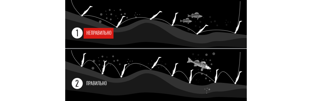 Техника ловли. Попробуйте вести приманку максимально однообразно, добиваясь единого ритма на протяжении всей проводки. Контролируйте паузу и расстояние, которое приманка проходит во время подмотки. Этого можно добиться изменением скорости подмотки, положением удилища и количеством оборотов катушки при подмотке. Монотонность и единый ритм в проводке часто оказываются ключом к заветному трофею.