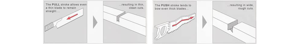 Особенностью японских пил, в отличие от европейских пил, является пиление на себя.