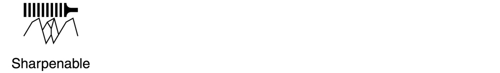 Sharpenable — особая закалка зубьев пилы, которая позволяет затачивать их с помощью надфиля или абразивного инструмента. Компания делает ставку на долговечность заточки и предлагает пользователям использовать сменные полотна в случае затупления. Однако, пилы, которые отмечены таким значком, могут быть заточены повторно.