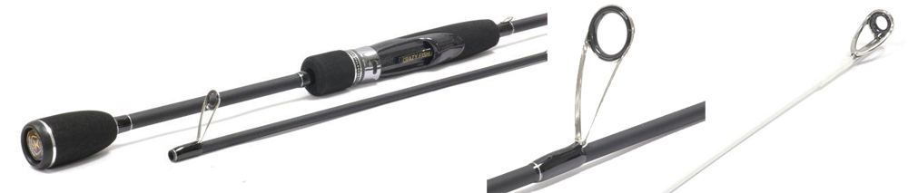 Crazy Fish Inspire создана, в первую очередь, для ловли микро джигом, а также легкими колебалками и воблерами. Удилище задумывалось как бюджетный инструмент для этих целей, соответствующий всем требованиям современной снасти для ловли на мелкие силиконовые приманки. Crazy Fish Inspire имеет новый японский бланк — Mitsubishi Rayon 30Т. Фурнитура использована корейская, чем и достигнута та самая бюджетность удилищ.
