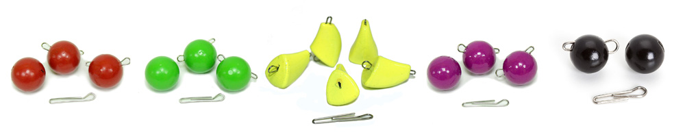Кроме классических разборных «чебурашек» шаровидной формы, в продаже имеется множество оригинальных грузиков нестандартных пропорций. У спиннингистов, часто рыбачащих на силикон в корягах, востребованы разборные груза-незацепялйки, представленные «проводникам» и «проходимцами». За счет вытянутого и заостренного профиля, они лучше проходят через затопленные деревья, валуны и прочие придонные объекты. Для лучшей видимости под водой свинец покрывается яркой краской.