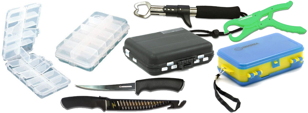 Помимо удилищ, катушек и приманок, компания Kosadaka предлагает широкий ассортимент вспомогательных товаров для рыбалки: