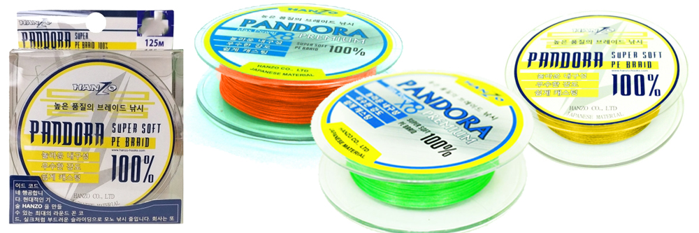 Плетеные шнуры Hanzo - недорогие и универсальные. Плетенки имеют достаточно плотное плетение, мягкие и крепкие. Широкая линейка тестов позволит подобрать шнур для любого вида ловли - от ультралайта до ловли на джерки. Удобная размотка - 125, 150 м. Яркие расцветки хорошо заметны рыболову, что позволяет лучше контролировать проводку. Hanzo Pandora – это шнур с лучшим соотношением цена/качество в своем классе.