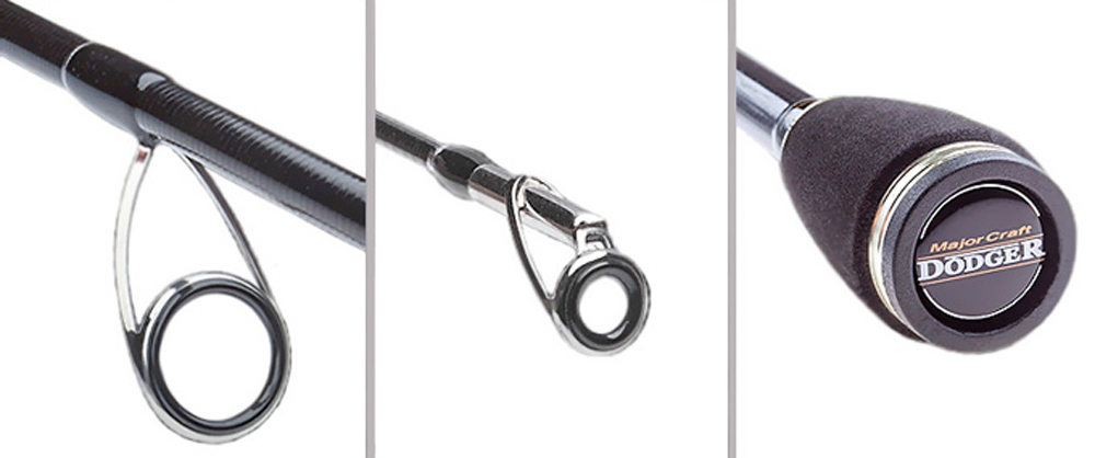 Спиннинг имеет два варианта строя бланка, а также выделяется широчайшей линейкой представленных тестовых диапазонов. Собран спиннинг практично и надежно. Нижняя часть рукояти удилища сделана из пробки. А особо опасные места оснащены неубиваемым композиционным материалом EVA. В качестве фурнитуры, бланк кастингового удилища Major Craft Dodger оснащен противозахлестными кольцами, марки Fuji KR-Series.