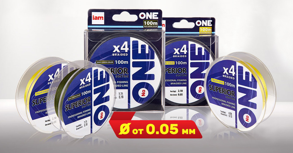 Серия №One Superior X4 тоже считается универсальной. Она подойдет для бейткастинга и разных спиннинговых техник. Повышенные показатели прочности и абразивоустойчивости позволяют использовать ее для фидерной рыбалки. При создании этой серии используется продвинутая методика плетения, которая позволяет производить сверхтонкие диаметры, сохраняя их прочность и разрывную нагрузку на достойном уровне. Также невысокая стоимость плетеных шнуров дополнят и без того положительный эффект от покупки. На сегодняшний день, совокупность этих параметров является лучшей среди бюджетных плетёных шнуров.
