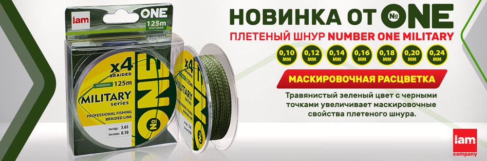 Серия плетеных шнуров Number ONE Military – это продукт с достойными рабочими характеристиками. Плетенка выделяется среди аналогов особой точечной расцветкой. Благодаря ей шнур отлично маскируется в любых водоемах. Шнур №ONE Military X4 подходит для фидерной рыбалки - за счет камуфлирующей окраски его не заметно на фоне дна. Плетенка имеет оптимальную мягкость, прочность и хорошо противостоит износу. Она состоит и 4 плотно сплетенных PE волокон. Серия подойдет не только для фидера - гладкая поверхность и размотка в 125 метров позволяет использовать шнур и для спиннинговой рыбалки.