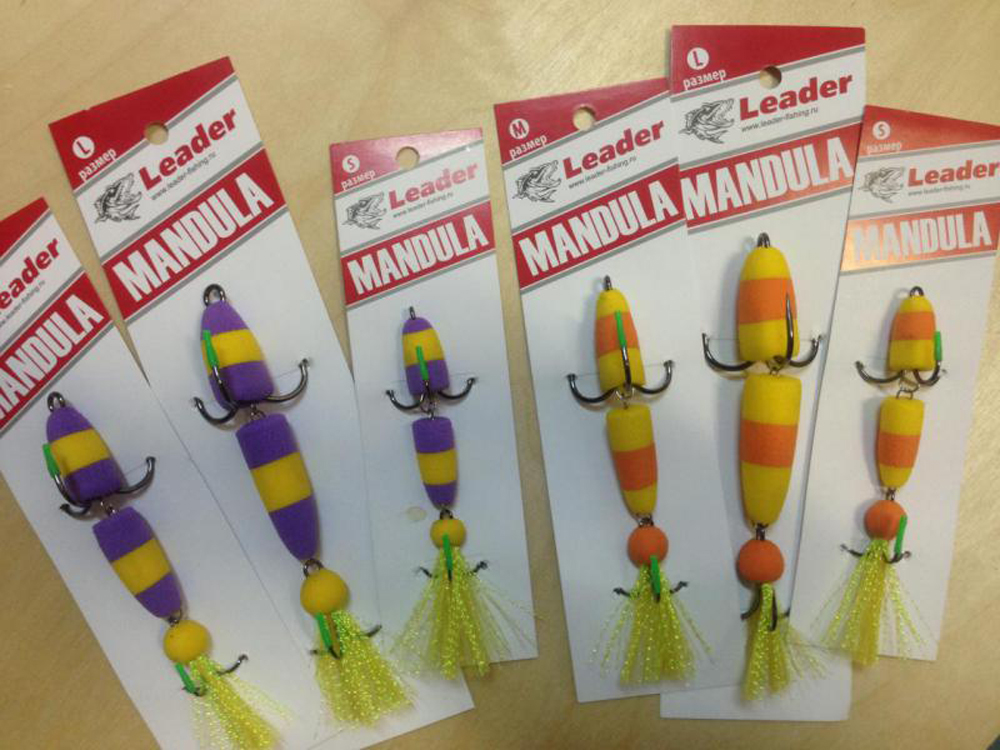 Мандулы является одной из усовершенствованных разновидностей поролоновых рыбок. Мандула Leader состоит из нескольких сегментов, которые соединены проволочным шарниром. Именно благодаря такой конструкции мандула имеет отличную подвижность и привлекательную игру. Кроме того, она гарантирует эффективную подсечку, так как оснастка, как правило, комплектуется двумя тройниками с открытым жалом. Наибольшее распространение получили мандулы на судака и щуку.