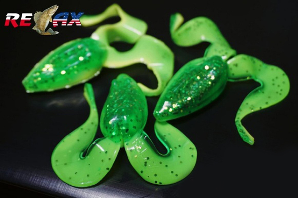 Недавно ассортимент Relax пополнился оригинальной приманкой - Banjo Frog 3". Это суперубойное оружие для ловли хищника по заливам рек и озер. Эффективно работает на поводке: серия рывков в окне кувшинок или зарослей с обязательной паузой и небольшим шевелением, имитация лягушки намеревающейся взобраться на лист - атака щуки, большой любительницы таких мест, не заставит себя ждать.