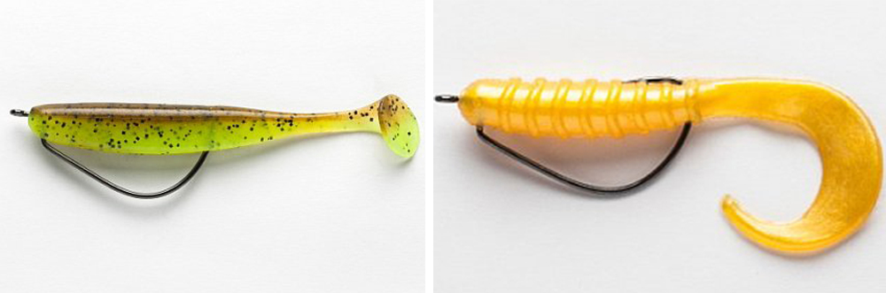Decoy выпускает серию подгруженных офсетных крючков, которые можно использовать для ловли крупными силиконовыми приманками без огрузки. Крючок уже сам имеет свинцовую огрузку, смещенную к месту изгиба офсетника. С помощью таких офсетников можно достаточно комфортно и быстро облавливать неглубокие водоемы, также незаменимы они при ловле в сильно заросших участках водоема За счет достаточно емкого свинцового грузика желательно использовать мясистые виброхвосты или твистеры. Такая конструкция позволяет приманке тонуть вертикально вниз и удерживать ее достаточное время в перспективном месте.