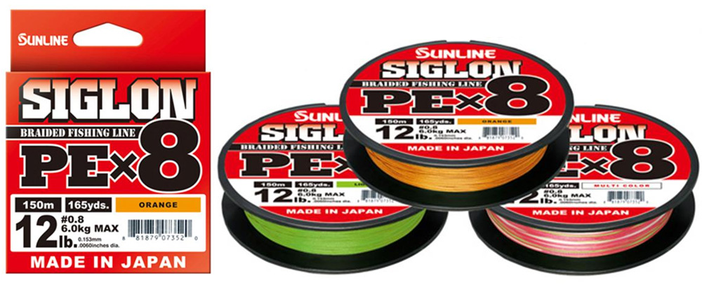 Также компания предлагает восьмижильные шнуры Sunline Siglon PEx8, которые молниеносно завоевали сердца рыболовов собственным отменным качеством. Модель шнуров Sunline Siglon X8 производится из восьми крепчайших волокон выработанных из современного материала EX-PE (Excellent PE), который намного дешевле, узлы прочнее, имеет плотное круглое сечение, быстрее вылетает со шпули, обладает минимальным диаметром и высокой абразивоустойчивостью. В ассортименте нашего магазина представлена леска в цвете мультиколор, темно-зеленый, салатовый, оранжевый, в размотке 150 м.