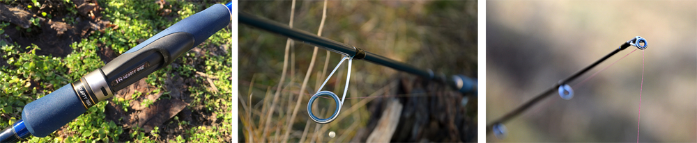 Комлевая часть бланка и часть хлыста до первого кольца окрашенны в приятный синий цвет с бирюзовым оттенком. Обращает на себя внимание темно-синяя рукоятка из EVA и кольца, а точнее сам кремний (SiC) такого же цвета. Рыболовам, которые устали от стандартного черного, однозначно Jig Force II придется по душе.