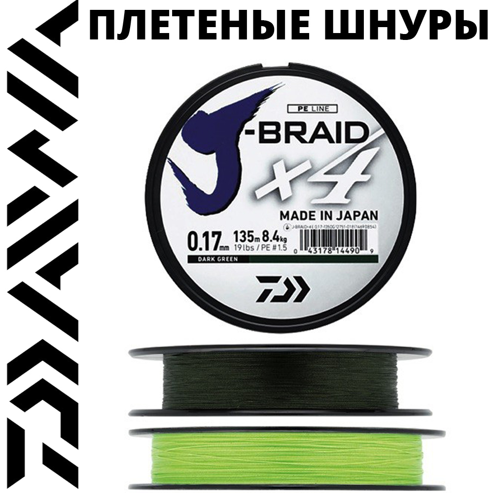 Леска плетеная Daiwa J-Braid X4 135m (зеленая)