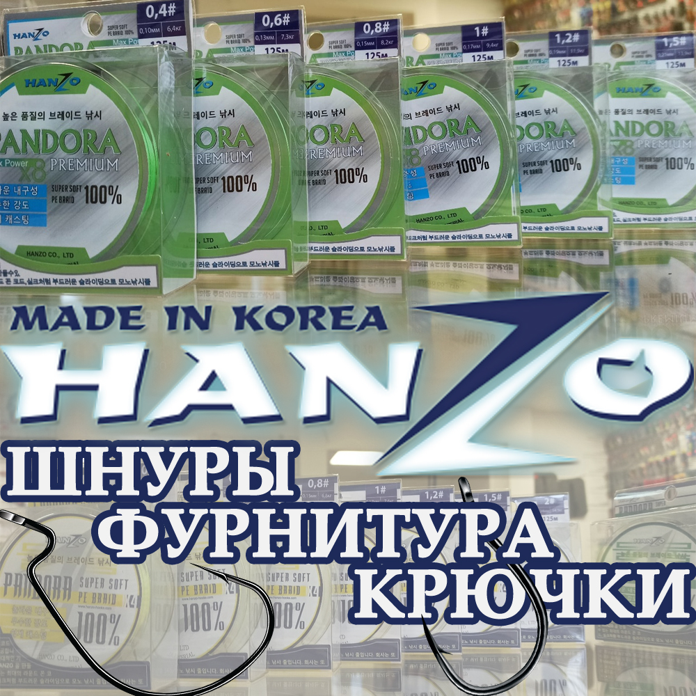 Уважаемые рыболовы, в нашем магазине представлен широкий ассортимент товаров корейской компании Hanzo - высококачественные и доступные плетеные шнуры, надежные крючки и различная фурнитуру. Уже более 20 лет под брендом Hanzo один из крупнейших корейских производителей рыболовных снастей Хао шандонг выпускает рыболовные крючки, позже ассортимент бренда пополнился плетенкой и различной фурнитурой – застежками, кольцами и вертлюгами. Бренд Hanzo хорошо известен российским рыболовом, которые о качестве рыболовной фурнитуры и крючков отзываются исключительно положительно.