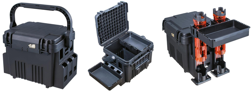 Ящик Meiho Versus VS-7080 - оборудован откидной крышкой с большим отсеком для рыболовных принадлежностей. Внутри ящика находятся две подставки, которые можно легко прикрепить по бокам, тем самым у вас получается дополнительная рабочая поверхность, на которой можно расположить приманки и рыболовные аксессуары. На корпусе ящика имеются специальные отверстия под дополнительные тюнинг комплекты.