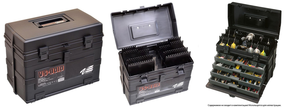 Meiho VS-8010 - очень вместительный рыболовный ящик состоящий из 5 уровней, включающий 4 выдвижных ящика.