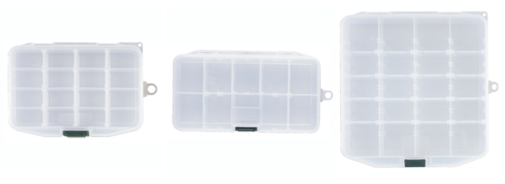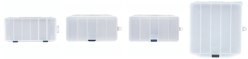 Также среди новинок, легкие прозрачные коробки из ударопрочнного пластика. Они имеют прочную и надёжную защёлку, легко оперировать одной рукой. Дизайн "сглаженных углов" для более лёгкого вхождения коробки в рыболовную сумку. Коробки имеют большое количество съёмных перегородок с системой "микро шага" Meiho Micro Rib System, благодаря чему универсальны в применении.