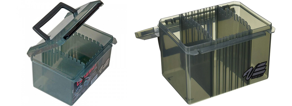 Коробка Meiho VS-4060 серии Versus изготовлена из качественного прочного пластика, имеет всего одну застежку, которая может выдержать множество напряжений при открывании/закрывании, плотно прилегает к корпусу, и с такой застежкой легко управляться одной рукой. Отличается конструктивной особенностью съемных разделителей (2 шт) - их положение можно фиксировать между направляющих ребер. Это дает Вам больше свободы в формировании пространства.