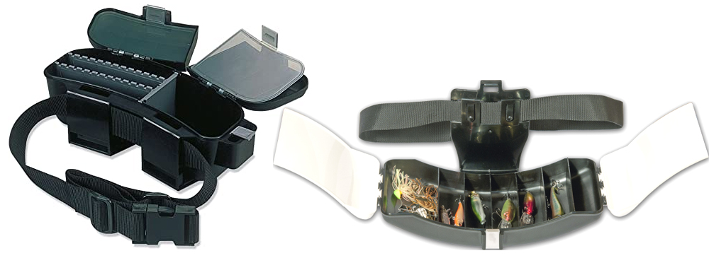 Интересные модели в виде коробки - поясной сумки сделаны из лёгкого и ударопрочного пластика. Подойдут для самых разных приманок и мелочей. За счет своей формы эти коробки очень удобны при пользовании. Наклоните к себе и спокойно меняйте приманку. Надежный ремешок прочно закрывается и не вызывает дискомфорта при носке. Такие коробки обеспечивают быстрый доступ ко всему необходимому. Закрывается на надежные замки.