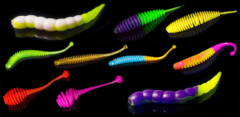 Стоит отметить, что среди широкой цветовой гаммы Trout Baits Jara представлены также цвета, светящиеся в ультрафиолете. «Светящиеся» приманки Jara способны отражать УФ-свет на глубине и обладают дополнительным привлекающим эффектом для хищников, которые видят их в несколько раз лучше, чем обычные снасти из силикона.