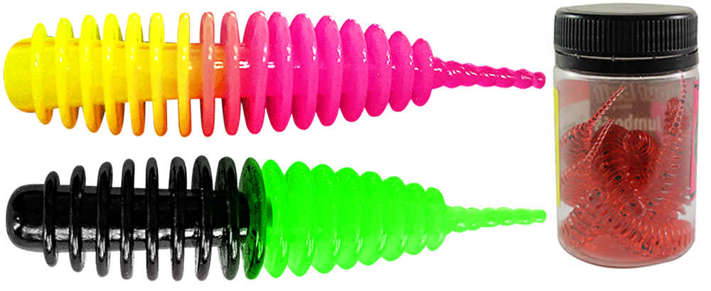 Trout Bait Jumbo 50 – универсальная форелевая приманка, которая подходит для ловли рыбы любой активности, а за счет относительно большего веса приманки позволяет ловить на дальних дистанциях. Мягкий силикон делает приманку очень подвижной, позволяя рыболову проявлять неограниченную фантазию при проводке. Рифлёное тело слага создаёт в воде дополнительный шумовой эффект, воздействующий на боковую линию хищника, привлекая его внимание. Jumbo имеет двухцветную окраску и большое количество цветовых решений.