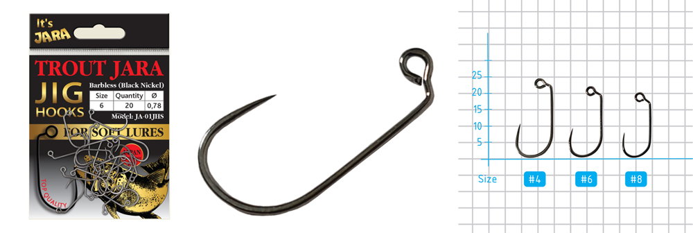 Компания Trout Jara в сотрудничестве с именитыми спортсменами, а также с профессиональными технологами по производству крючков, разработали специализированные, отвечающие всем необходимым требованиям, безбородые джиговые крючки Trout Jara Jig Hooks JA-01JHS для ловли форели.