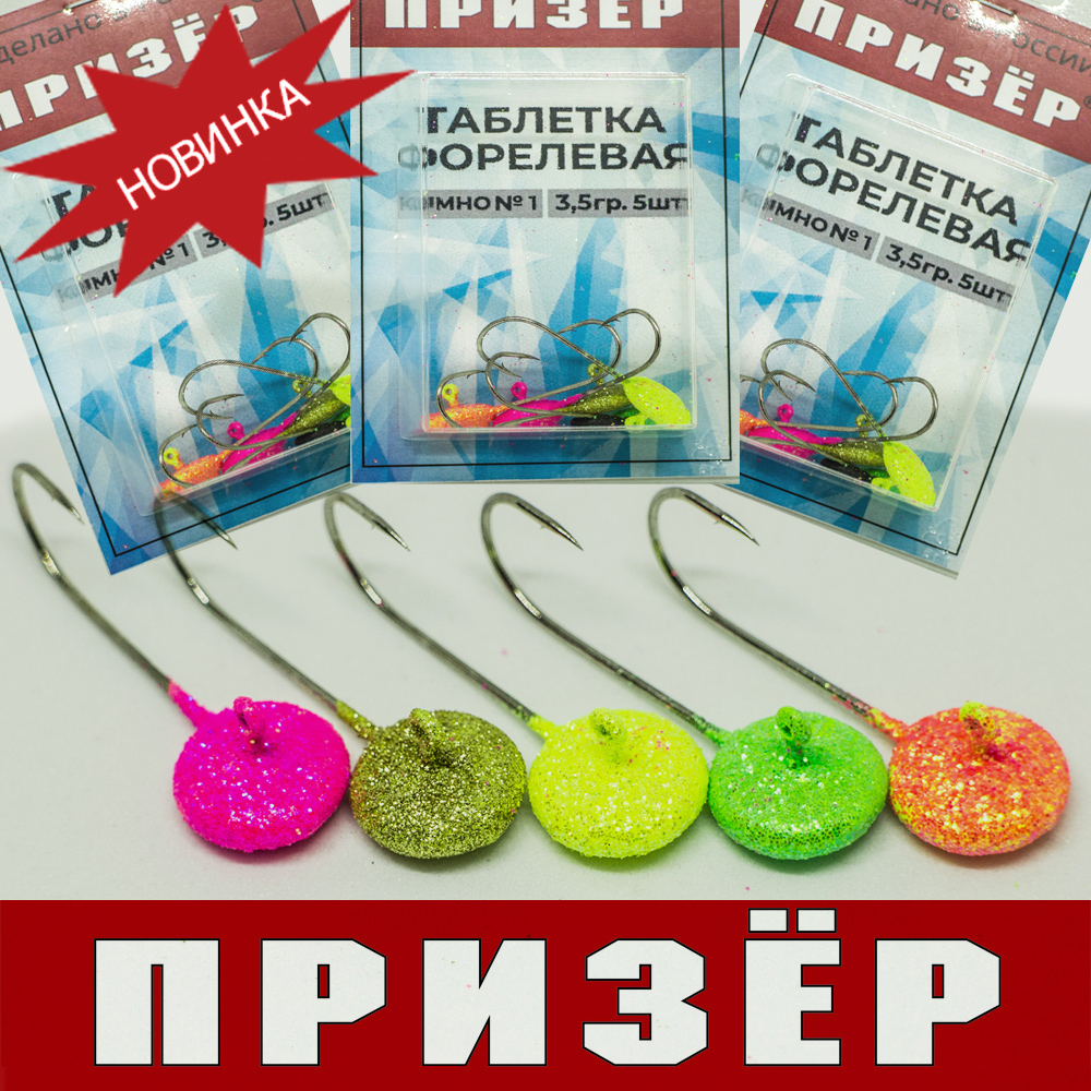важаемые рыболовы, в нашем интернет-магазине представлен широкий ассортимент джиг-головок, в том числе головки Призёр любых типов и размеров: от самых легких ультралайтовых с миниатюрными крючками до самых тяжелых для ловли трофейного хищника. Под брендом Призёр RybalkaShop.ru выпускает рыболовные грузила собственного производства. Рады сообщить о пополнении ассортимента самых миниатюрных джиг-головок, предназначенных для ультралайта - форелевых таблеток Призёр. Теперь таблетки представлены в расцветках с блестками в весе 2.5 и 3.5 грамма.