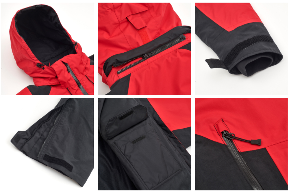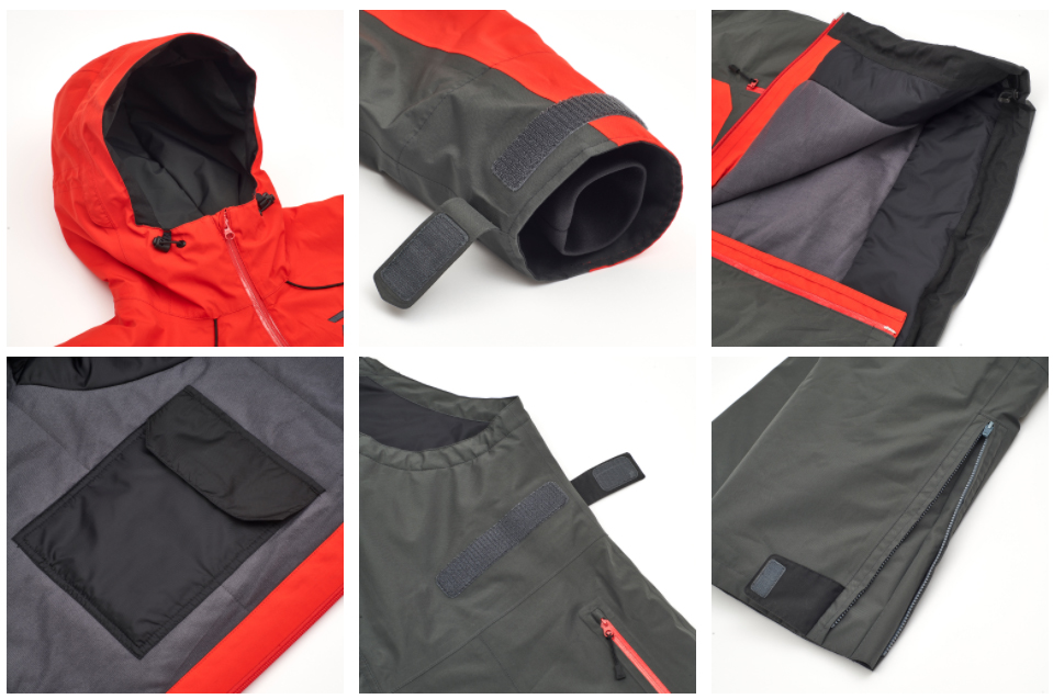 Конструкция Daiwa DW-1920E Gore-Tex продумана до мелочей. Костюм состоит из функциональной куртки и комбинезона. На куртке утягивающийся капюшон с жесткой вставкой, что позволяет поддерживать его форму и обеспечивать достаточную обзорность даже при резких поворотах головы. Внутренние трикотажные манжеты надежно защищают запястья. Имеются внешние и внутренние карманы. Молнии обеспечивают полную влаго- и ветронепроницаемость.