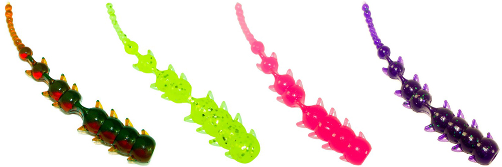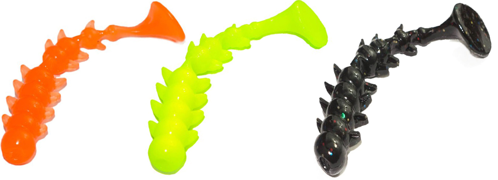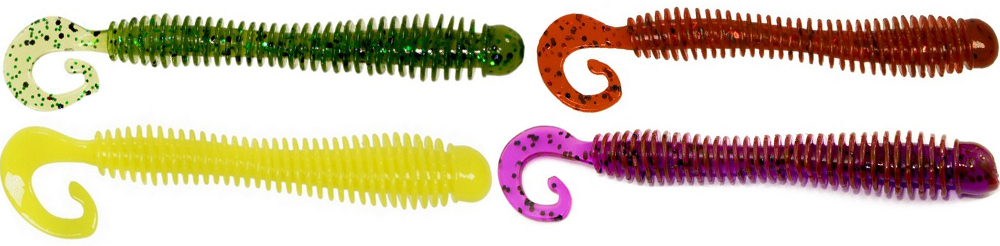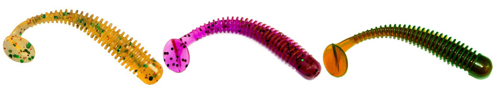 Приманка имеет очень стабильную и привлекательную для рыбы игру на малых весах, а ребристое тело начинает извиваться при малейшем движении спиннинга. Выпускается в размере от 5 до 12 см, в разнообразной цветовой гамме, с ароматом креветки или чеснока.