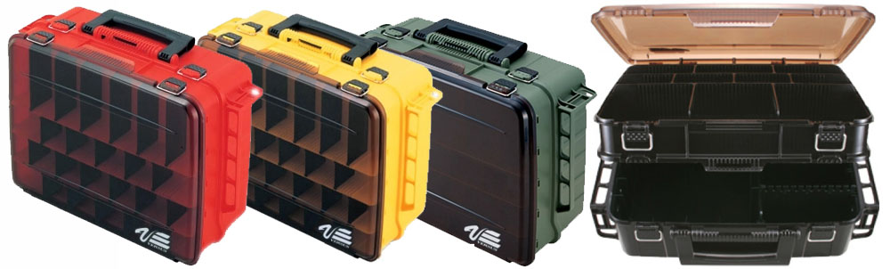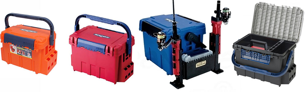 Говоря о ящиках, компания Meiho предлагает инновационную модель. Они изготовлены из противоударного полимера, зарекомендовали себя как очень вместительные и невероятно комфортные в использовании ящики. Переносится такой ящик с помощью складной пластиковой ручки. Крышка открывается в две стороны. Для этого ящик оснащен специальными петлями и фиксирующими защелками. Внутреннее пространство ящика не имеет каких-либо перегородок. Это очень удобно, так как позволяет разместить в ящике рыболовные коробки разного формата.