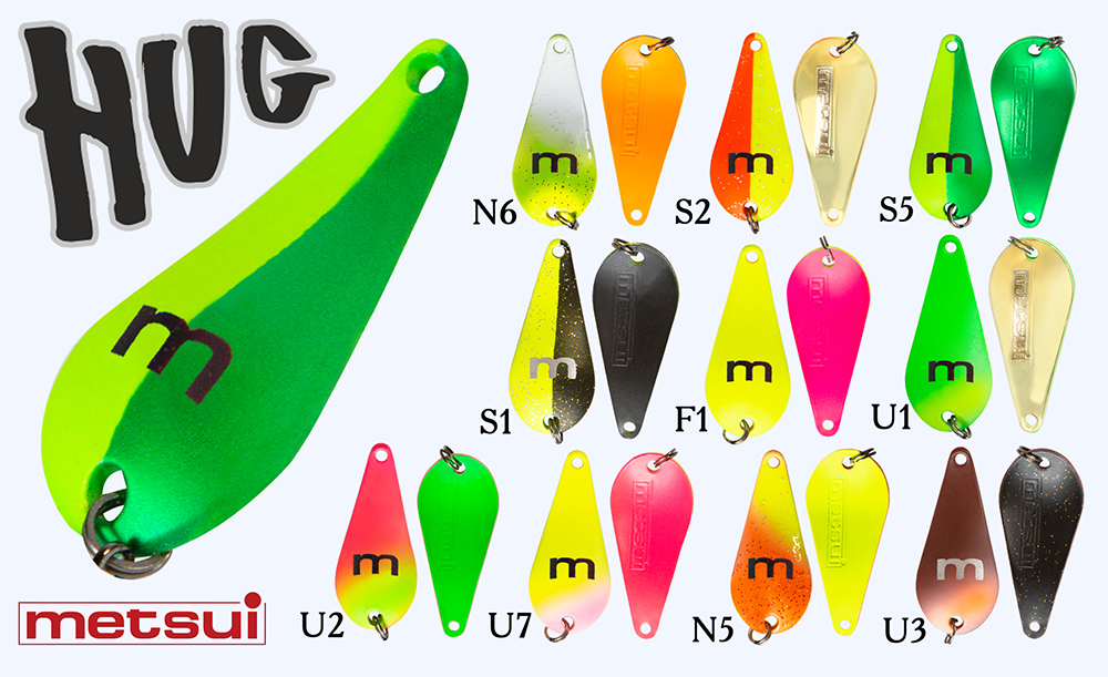 Metsui Hug - крупная, тяжелая блесна с размашистой собственной игрой. Отлично подходит для ловли с больших дистанций, когда для поимки, надо произвести дальний заброс. Неплохо держит умеренную струю, интересно "сыпется" при паузах, также работает при подтвичивании. Хорошо проявила себя по форели, жереху, крупному голавлю, привлекая рыбу с дальних дистанций. Представлена в весе 4,2 гр. Оснащена одинарным крючком Decoy с микробородкой.