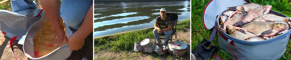 Складные ведра для рыбалки также применяются для приготовления прикормки и транспортировка живца.