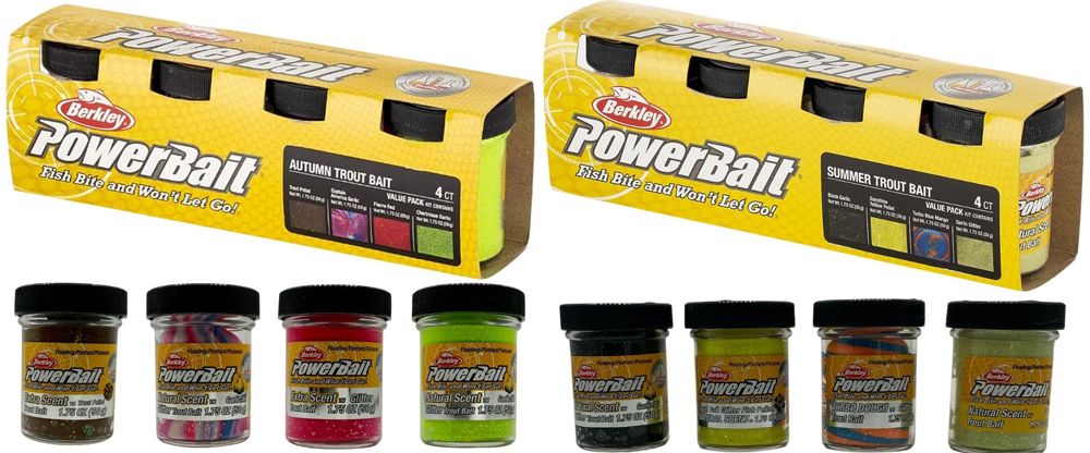 Кроме того, теперь вы можете приобрести набор форелевых паст Berkley, в который входит четыре пасты разного цвета и с разным ароматом, подобранных специально для ловли в определенное время года. Уловистая форелевая паста представлена и в популярных сериях от Berkley. Если вы ищете приманку для летней или осенней ловли форели – то паста станет идеальным выбором.