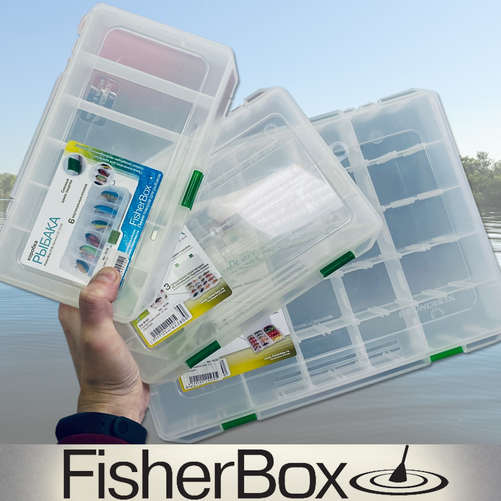 Все крышки коробок выполнены из полупрозрачного пластика, который позволяет, не открывая их найти нужные приманки или снасть. Коробки Fisher Box имеют различную форму, вместимость, различные габаритные размеры. Некоторые модели разделены внутри на ячейки для более удобной эксплуатации. Среди моделей, представленных торговой маркой Fisher Box, вы можете подобрать наиболее подходящий для ваших нужд и условий вариант.