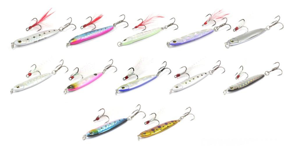 Расцветка для блесен достаточно разнообразная, а выбранные цвета наиболее уловисты при ловле вышеперечисленных рыб. Имеются яркие, и натуральные цвета, также различные двойные. В каждом регионе свои тонкости в ловле и работают свои расцветки, палитра Iron Minnow позволяет подобрать удачный вариант для любых условий. Качество ЛКП выше всяких похвал. Оно долго "живет" и не разрушается, выдерживает зубы хищной рыбы.