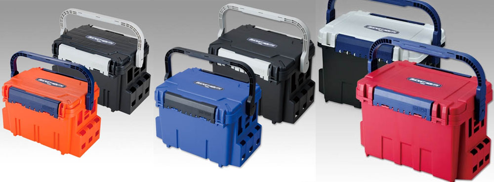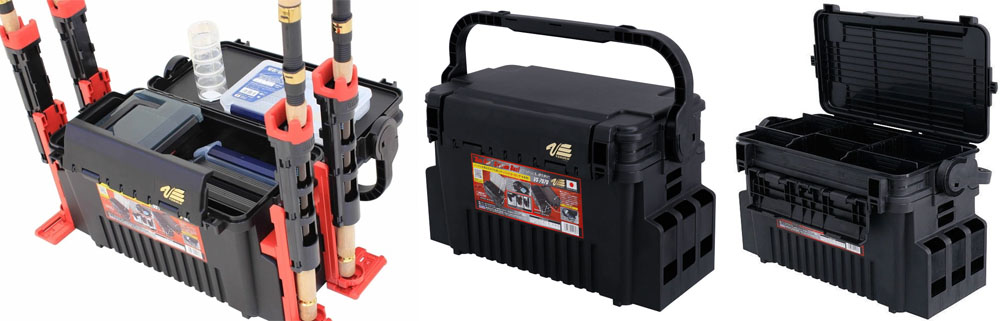 Компания Meiho предлагает инновационные модели ящиков, они изготовлены из противоударного полимера, зарекомендовали себя как очень вместительные и невероятно комфортные в использовании. Переносится такой ящик с помощью складной пластиковой ручки. Крышка открывается в две стороны. Для этого ящик оснащен специальными петлями и фиксирующими защелками. Внутреннее пространство ящика не имеет каких-либо перегородок. Это очень удобно, так как позволяет разместить в ящике рыболовные коробки разного формата.