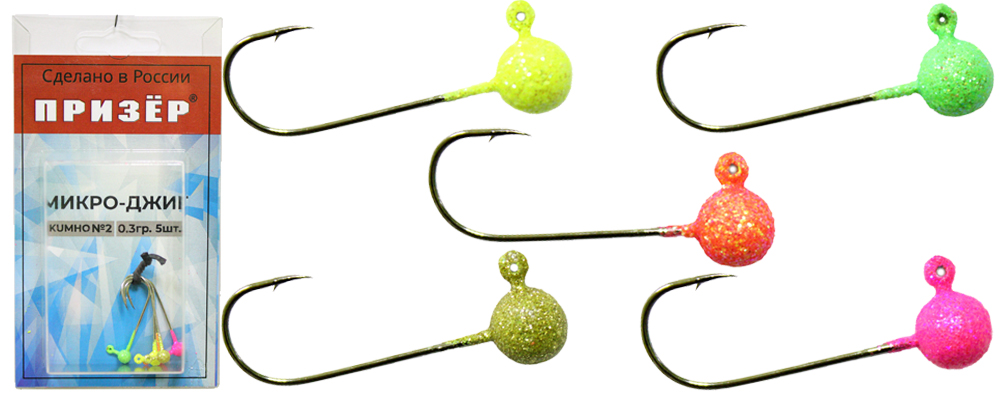 Также вы можете приобрести Джиг-головки Призёр Микроджиг шар с блестками.