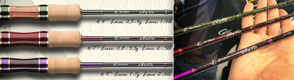 Серия спиннингов Zetrix Arte состоит из четырех моделей, отличающихся по длине, тесту и мощности. Модели ATS-642SUL и ATS-652SUL — самые деликатные в линейке. Обеспечивает максимальную чувствительность даже с самыми легкими приманками. ATS-672UL — самый универсальный спиннинг из всех. И приманку легкую бросит, и форсировать вываживание позволит. ATS-692L — самое мощное удилище в серии. Относительно крупные и упористые приманки, а также способность ловить на течении делают эту модель востребованной и у любителей ловли в формате Stream.